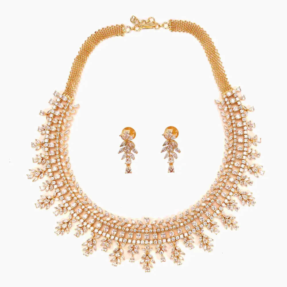 Neklace and Earring Set Gold Polish Rhodium Polish (A158)